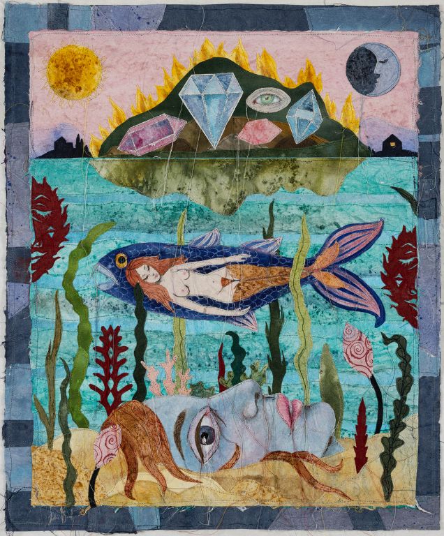 Genfødsel. 2025. 104 x 183 cm (papirmål). Akvarel, tusch og sytråd på japansk bambuspapir Special