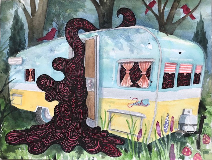 Camping 2020, Akvarel på papir.