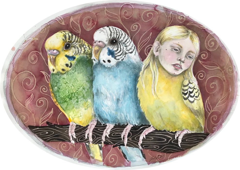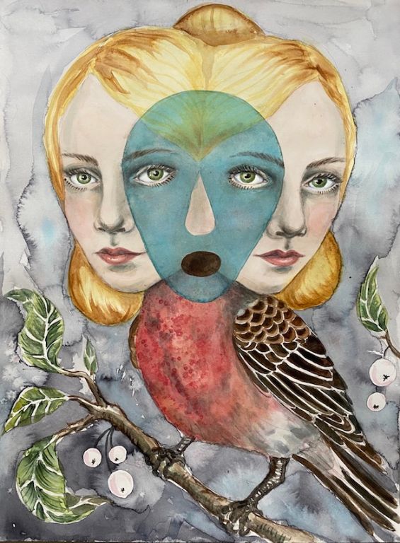 Stuefugle 2020, Akvarel på papir.