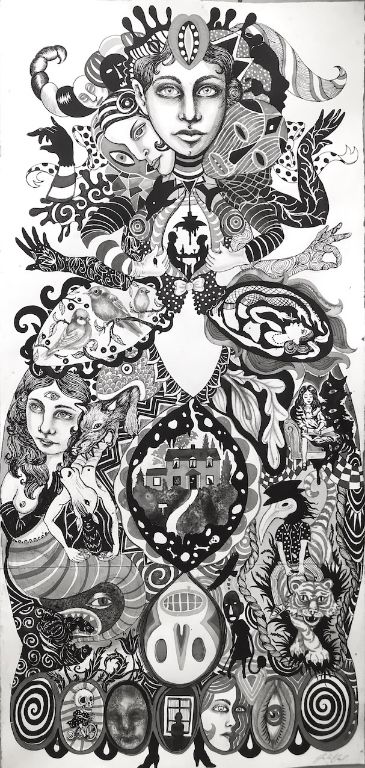 Primavera 2020, 136x66 cm, Tusch på papir
