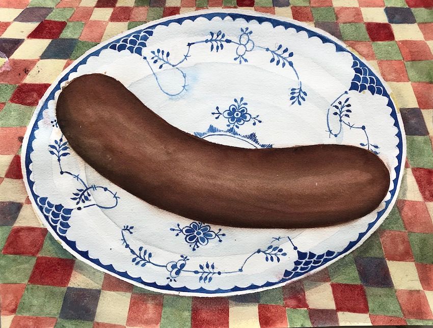 Pølse 2020, Akvarel på papir.