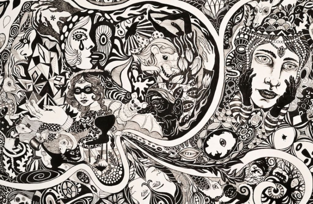 Tusch og blyant på papir. 2018. 70x171 cm