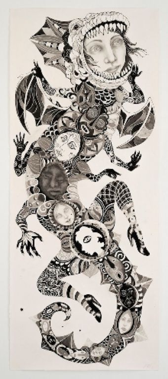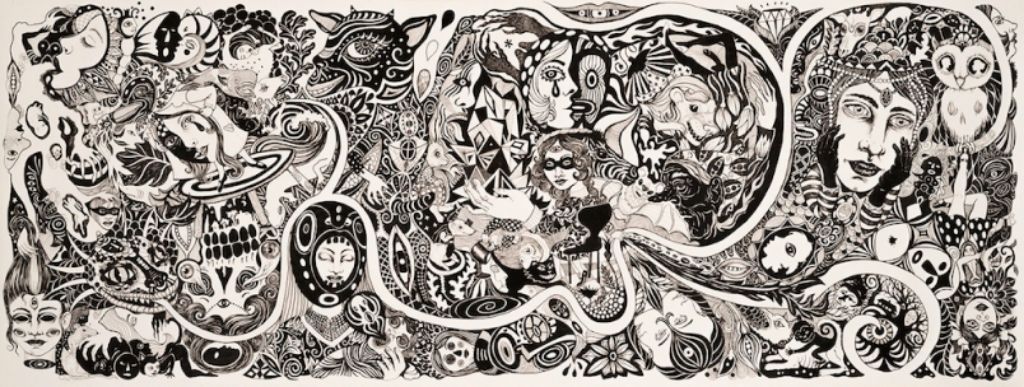 Tusch på papir. 2017. 302x115 cm