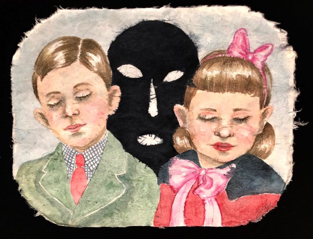 Boy, Girl and Shadow 32x41,5 cm, Akvarel og tusch på japanpapir, 2019