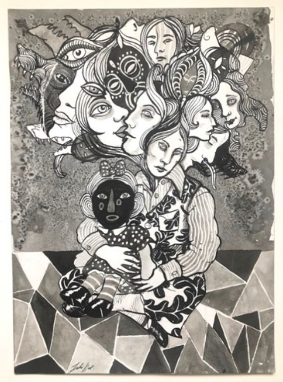 Young Girl 36x26 cm, Tusch og blyant på papir, 2019