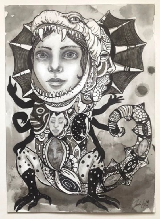 Reptile 36x26 cm, Tusch og blyant på papir, 2019