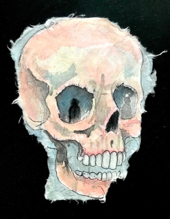 Skull 26,5x19 cm, Akvarel og tusch på japanpapir, 2019