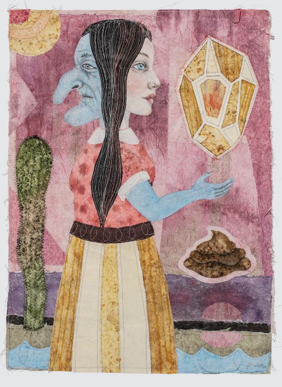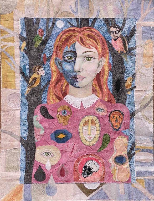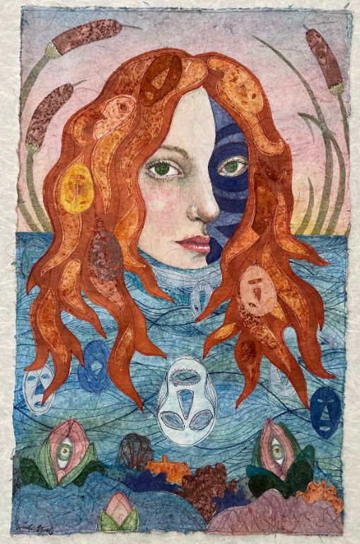 Siren 2021, 80 x 51 cm., Syet papircollage: akvarel, tusch, sytråd, yume papir.