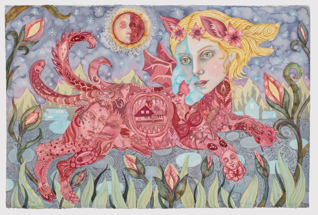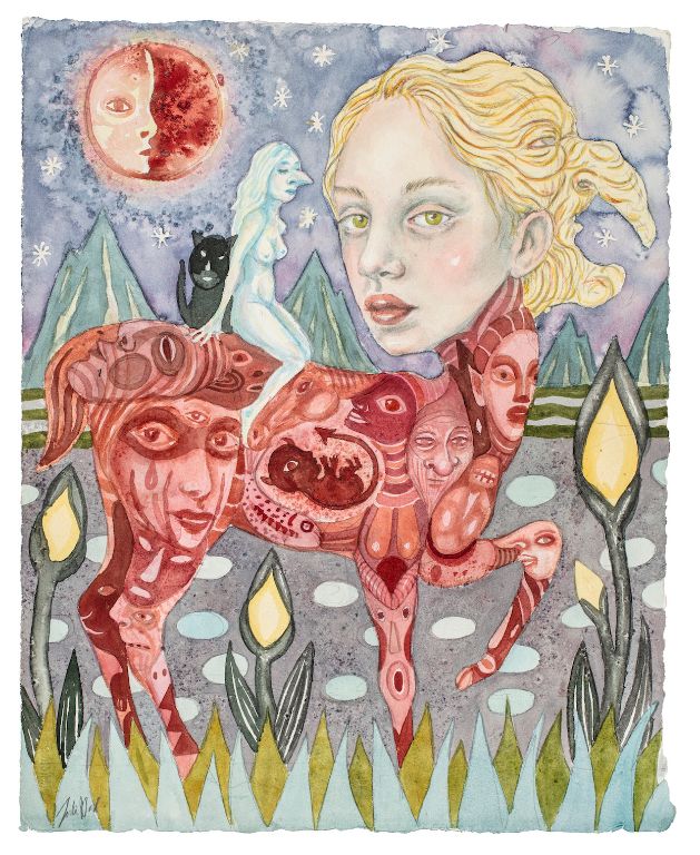 Rewilding Beast 2021, 152x102 cm, Akvarel og tusch på papir