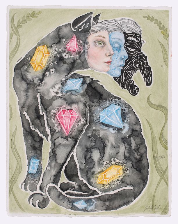 Diamond Cat 2021, 38x48 cm., Akvarel og tusch på papir