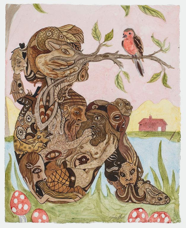 Nature Child 2021, 38x48 cm., Akvarel og tusch på papir