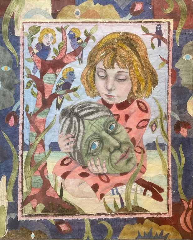 Gentle Gardening 2022, 109 x 89 cm, Akvarel, tusch og sytråd på japansk yume papir.