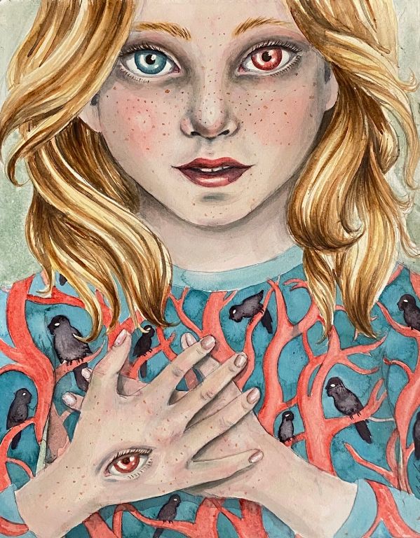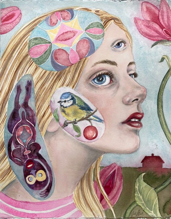 Psychic Teen I (Mind) 2022, 48 x 38 cm., Akvarel og tusch på papir.