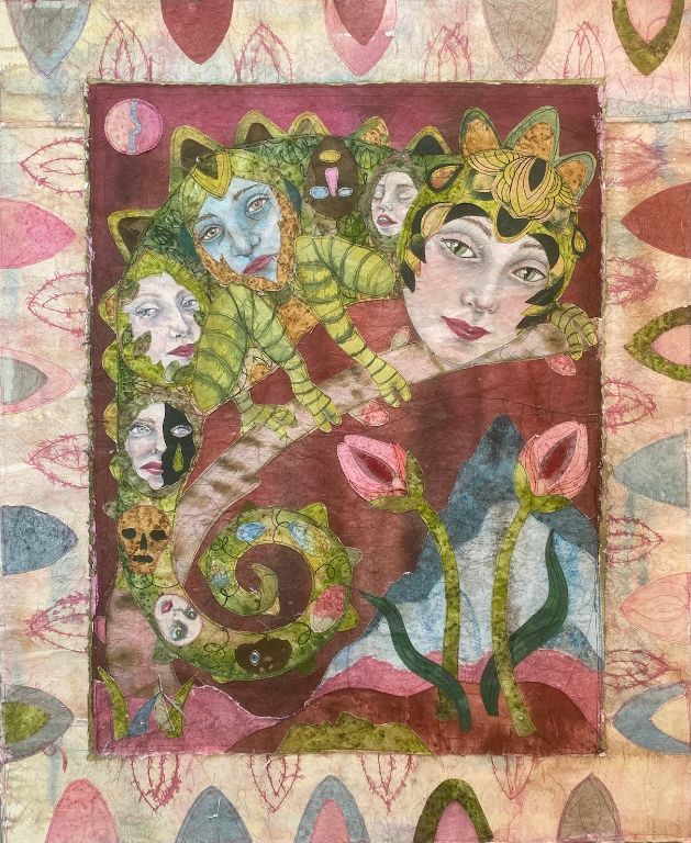 The Change 2022, 109 x 89 cm., Akvarel, tusch og sytråd på japansk yume papir.