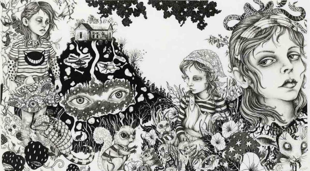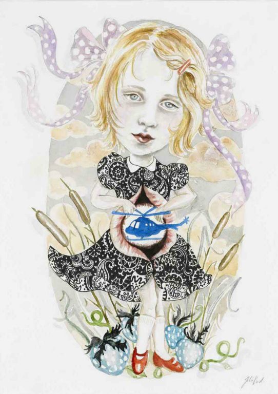 Such A Big Girl 57x76 cm. Watercolour, crayons, felt-tip pen and ink on paper.