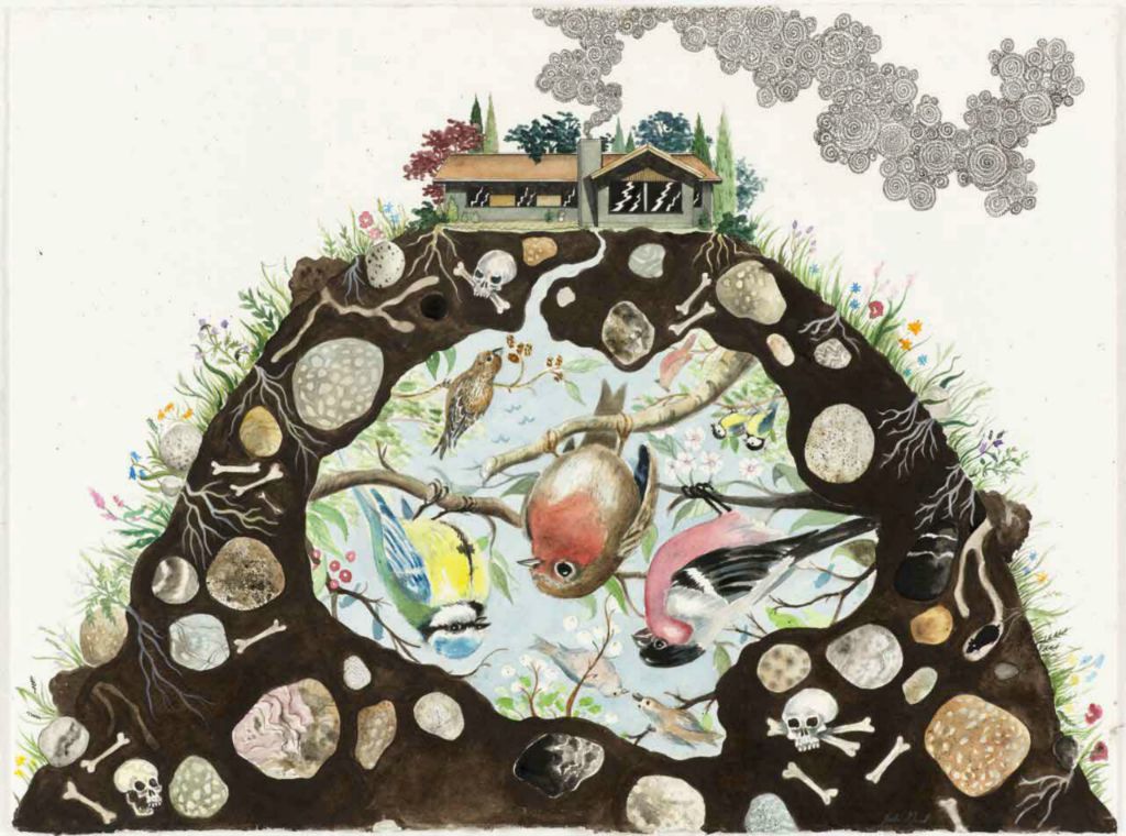 House on a Hill 57x76 cm. Watercolour and felt-tip pen on paper.