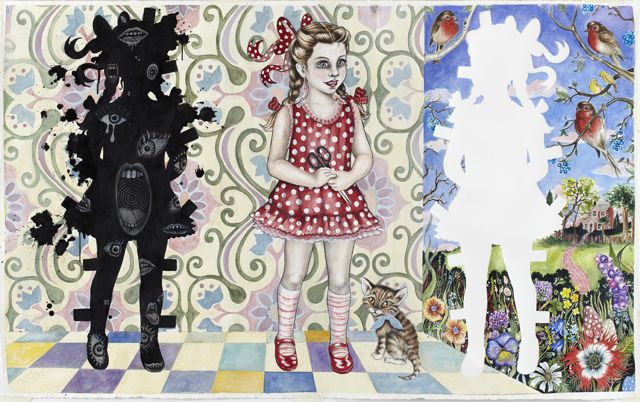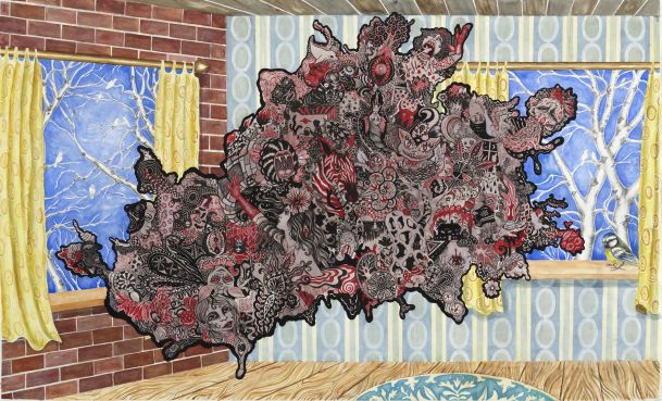 115 x 185 cm. Akvarel, farveblyant og tusch på papir