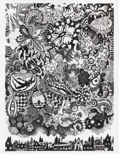 188 x 245 cm. Poscapen og Tusch (Indian Ink) på papir.